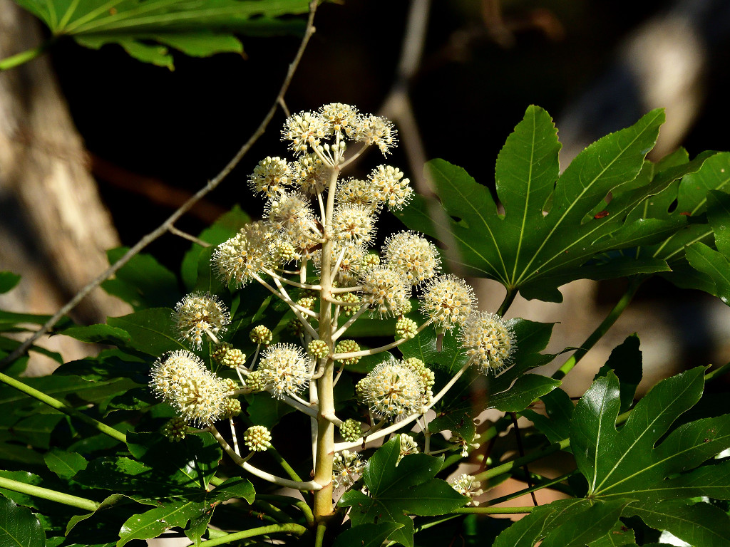 葉が掌状に多裂するため付いた名。しかし、裂数は8つではない。庭のヤツデも9裂が多い