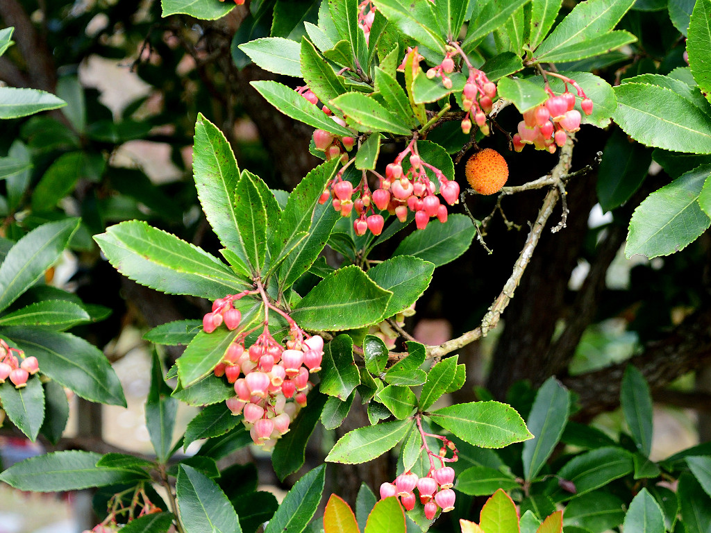 果実がイチゴを連想され、花が紅色のため イチゴノキは白色